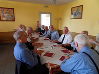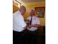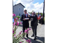 Avant le déjeuner convivial à Morcenx Monsieur Michel Dupouy reçoit des mains du Délégué Général son insigne de Délégué sur Arengosse pour le comité de Ygos St Saturnin