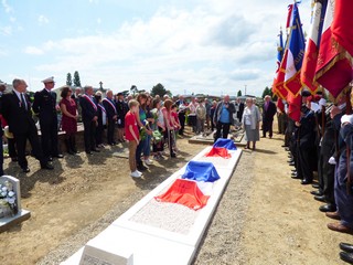 L'inauguration d'une plaque fixée au Monument aux Morts sur laquelle ont été ajoutés les noms des trois Morts pour la France.